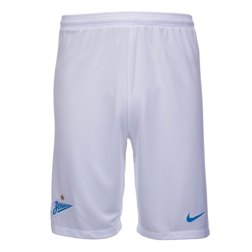 Трусы футбольные, игровые, из комплекта основной формы Питерского футбольного клуба Зенит, мужская, юношеская модель NIKE ZENIT BRT STAD SHORT HA 919696-100 JR имеет светлую расцветку с яркими декоративными элементами лазурного цвета. Модель имеет удобный, прямой силуэт, комфортно сидит на теле, подчеркивая физическую форму футболиста. В поясе вшита эластичная резинка, которая надежно удерживает трусы на фигуре. Внутри имеется прочный шнурок, который обеспечивает быструю регулировку плотности посадки. Прямые штанины с одной стороны украшены логотипом производителя, а с другой эмблемой Питерского футбольного клуба Зенит. Модель пошита из прочного материала в состав, которого входят волокна полиэстера, что обеспечивает ткани высокие потребительские качества, ткань обладает прочностью, не рвется во время эксплуатации, высокая эластичность ткани обеспечивает значительное растяжение без видимых деформаций. Для большего комфорта в структуру ткани вплетены волокна Dri-FIT, которые с разных концов имеют различную толщину, что обеспечивает отличное впитывание влаги с поверхности тела, отвод ее на наружный слой, где осуществляется испарение. Шорты имеют перфорацию, что обеспечивает хорошую вентиляцию и снабжает кожу необходимым кислородом, создавая благоприятный микроклимат внутри изделия. Шорты не прихотливы в эксплуатации, они хорошо стираются, не линяют и не садится, их можно использовать для занятий спортом или игры в футбол, они отлично подойдут для отдыха или в качестве повседневной одежды спортивного стиля.