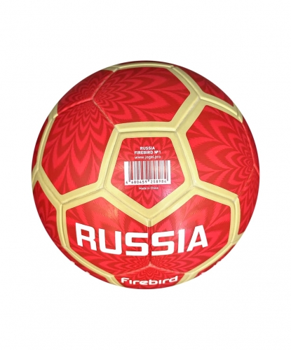 Jögel Firebird — сувенирный мяч, разработанный в дизайне игровой формы сборной России по футболу. Мяч станет прекрасным подарком для коллекционеров. Неповторимый дизайн мяча разработан совместно с Российским футбольным союзом, вдохновлен образом жар-птицы, которая символизирует пламенную страсть и стремление к результату. Характеристики: Рекомендованные покрытия: натуральный газон, синтетическая трава, резина, гаревые поля, паркет Материал поверхности: термополиуретан Материал камеры: бутил Тип соединения панелей: клееный Количество подкладочных слоев: 2 Количество панелей: 32 Размер: 1 Вес, гр: 210-230 Длина окружности, см: 47-49 Мяч поставляется: накаченный Основной цвет: красный Дополнительный цвет: золотой Производство: КНР