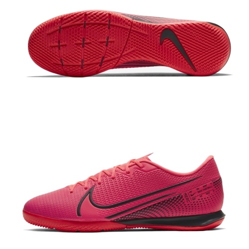 Игровая обувь для зальных покрытий, модель любительского уровня представлена в цветах новой коллекции Nike Future Lab Pack, которая стала первой в этом 2020 году. Игровая обувь оформлена в сочетании красного и розового цветов, и ее расцветка дополнена акцентами черного цвета. Игровая обувь имеет мягкий, текстурированный верх, выполненный из легкого, синтетического материала, который дает отличное ощущение мяча при касании. Удобная, внутренняя подкладка обволакивает ногу, создавая по-настоящему индивидуальную посадку. Внутренняя стелька из легкого, вспененного материала обеспечивает дополнительную амортизацию. Симметричная система шнуровки с дискретными люверсами не только создает индивидуальную посадку, но и обеспечивает дополнительную поддержку средней части стопы. Резиновая подошва в игровой обуви Найк Вапор 13 Академи обеспечивает оптимальный уровень сцепления на жестких, полированных, зальных покрытиях, облегчая игроку набор скорости и маневрирование.