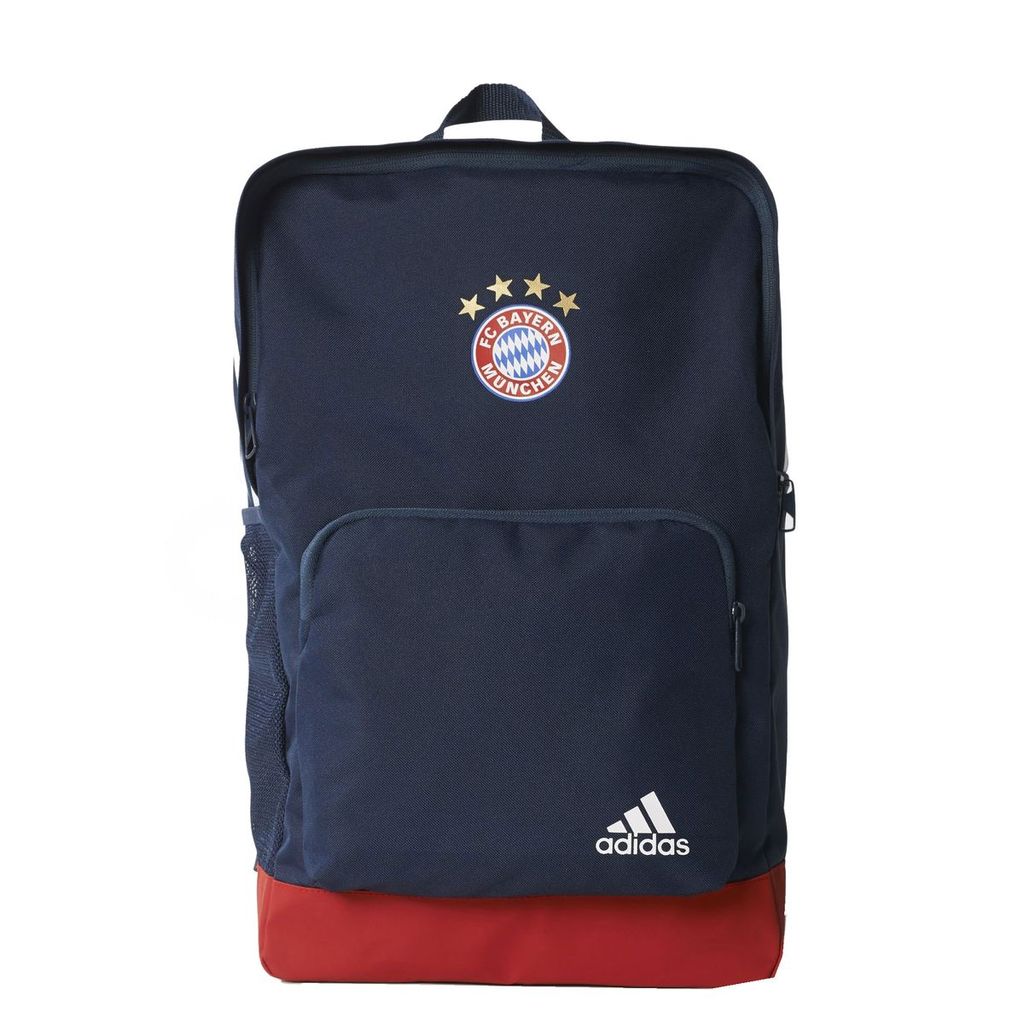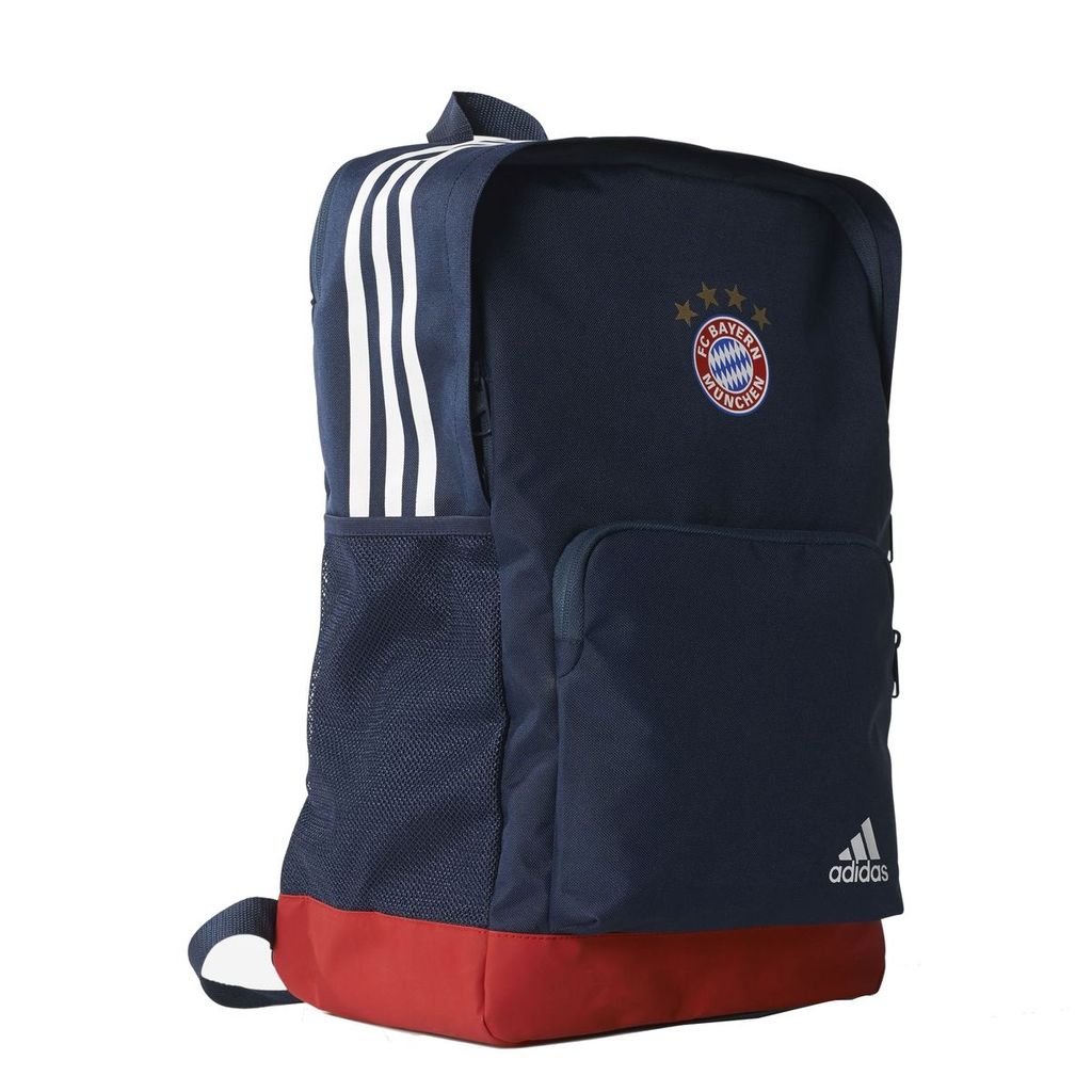 Удобный спортивный рюкзак для транспортировки формы, с нанесенной символикой Немецкого футбольного клуба Бавария, Мюнхен ADIDAS FCB BACKPACK BR7049 модель имеет темную синюю расцветку и дно из материала красного цвета, что обеспечивает яркий и стильный силуэт. На фронтальной стороне на накладном кармане имеется логотип производителя, контрастного белого цвета, а в верхней части имеется эмблема Немецкого футбольного клуба Бавария, Мюнхен. В верху на клапане нанесены три фирменные адидасовские полоски. Модель имеет вместительное отделение, в котором удобно хранить различные спортивные аксессуары или спортивную форму. Доступ в отделение закрывается при помощи клапана с застежкой молнией. Внутри имеется кармашки, которые помогают организовать внутреннее пространство. На боках расположены удобные сетчатые карманы, которые удобно использовать для бутылочек с водой. Бутылочку можно достать из кармана не снимая рюкзака с плеч. Модель пошита из современного синтетического тканого материала в состав, которого входит полиэстер, ткань прочная и износостойкая, выдерживает механические нагрузки. Водоотталкивающие качества материала обеспечивают защиту от осадков. Дно выполнено из более плотного материала, что обеспечивает максимальный уровень защиты. Наличие анатомических лямок обеспечивает возможность транспортировать рюкзак на спине. Лямки изготовлены из мягкого материала, что обеспечивает дополнительный комфорт. Спинка рюкзака изготовлена из материала climacool , что обеспечивает хорошую вентиляцию и создает ощущения прохлады и свежести, сетчатые вставки обеспечивают хорошую вентиляцию. Модель имеет размеры: дно 18 см х 30 см, высота 46 см.Размеры и Вес в упаковке: Размеры (Д х Ш х В): ~ 410 x 460 x 30 мм. Вес: ~ 0.436 кг.